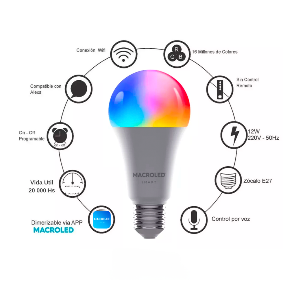 FOCO LED BULBO A60 12W SMART WIFI E27 RGB+WW+CW MACROLED